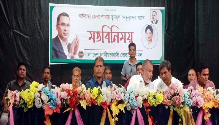 বাংলাদেশ জাতীয়তাবাদী স্বেচ্ছাসেবক দলের কেন্দ্রীয় কমিটির সভাপতি এস. এম. জিনালী প্রধান অতিথি হিসেবে মঙ্গলবার স্থানীয় জেলা শিল্পকলা একাডেমি মিলনায়তনে স্বেচ্ছাসেবক দল গাইবান্ধা জেলার তৃণমূল নেতৃবৃন্দের সাথে কেন্দ্রীয় কর্মসূচির অংশ হিসেবে মতবিনিময়কালে এসব কথা বলেন।