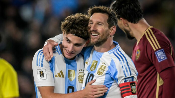 আর্জেন্টাইন কোচ লিওনেল স্কালোনি আগেরদিন প্রশংসায় ভাসিয়েছেন নিজের প্রিয় এই শিষ্যকে। একইসঙ্গে ঘরের মাঠে আরেকটি বিশেষ ম্যাচ দিয়ে ইতি টানার প্রত্যাশাও জানিয়েছেন। সেটি সময়ের হাতে ছেড়ে মেসিকে যেভাবে যে রূপে দেখতে চান কোচ, তাই দেখালেন এই তারকা ফরোয়ার্ড। ম্যাচজুড়েও আধিপত্য ছিল স্বাগতিক আকাশি-সাদা জার্সিধারীদের। ৭৭ শতাংশ বল দখলের পাশাপাশি মেসি-আলভারেজ-আলমাদারা ১৭টি শট নেয়। যার ৯টি ছিল লক্ষ্যে। বিপরীতে ভেনেজুয়েলা ৫ শটের একটিও লক্ষ্যে রাখতে পারেনি।
