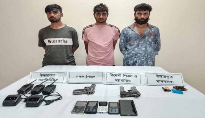 মেহেরপুরে বিদেশি পিস্তল, নকল পিস্তল, ওয়াকিটকি সেট, মাদকদ্রব্য ও সরঞ্জামাদি উদ্ধারসহ তিনজনকে আটক করেছে যৌথবাহিনী।