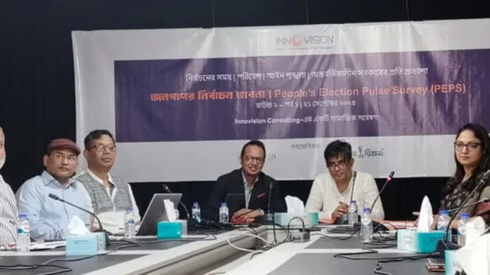 জরিপের ফলাফল তুলে ধরেন ইনোভেশন কনসাল্টিং-এর ব্যবস্থাপনা পরিচালক রুবাইয়াত সারোয়ার। অনুষ্ঠানে জানানো হয়, চলতি সেপ্টেম্বর মাসের ২ থেকে ১৫ তারিখ পর্যন্ত এই জরিপ চালানো হয়। এতে অংশ নেয় ১০ হাজার ৪১৩ জন ভোটার।