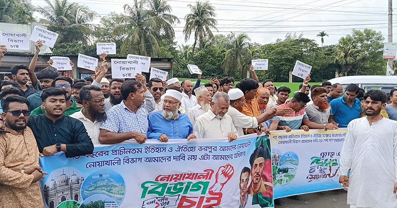 নোয়াখালীকে প্রশাসনিক বিভাগ ঘোষণার দাবিতে মঙ্গলবার (৭ অক্টোবর) নোয়াখালীর কবিরহাটে বিশাল মানববন্ধন ও বিক্ষোভ মিছিল অনুষ্ঠিত হয়েছে।