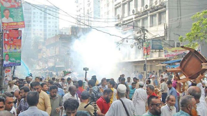 শনিবার (১১ অক্টোবর) বিকেল সাড়ে ৩টার দিকে এই ঘটনা ঘটে। পরিস্থিতি নিয়ন্ত্রণে আনতে পুলিশকে টিয়ারশেল নিক্ষেপ করতে হয়েছে।