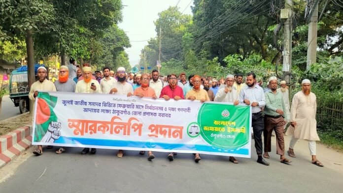 জুলাই জাতীয় সনদের ভিত্তিতে আগামী ফেব্রুয়ারিতে নির্বাচনসহ ৫ দফা দাবি আদায়ের লক্ষ্যে গণমিছিল ও জেলা প্রশাসক বরাবর স্মারকলিপি প্রদান করেছে ঠাকুরগাঁও জেলা জামায়াতে ইসলামী।