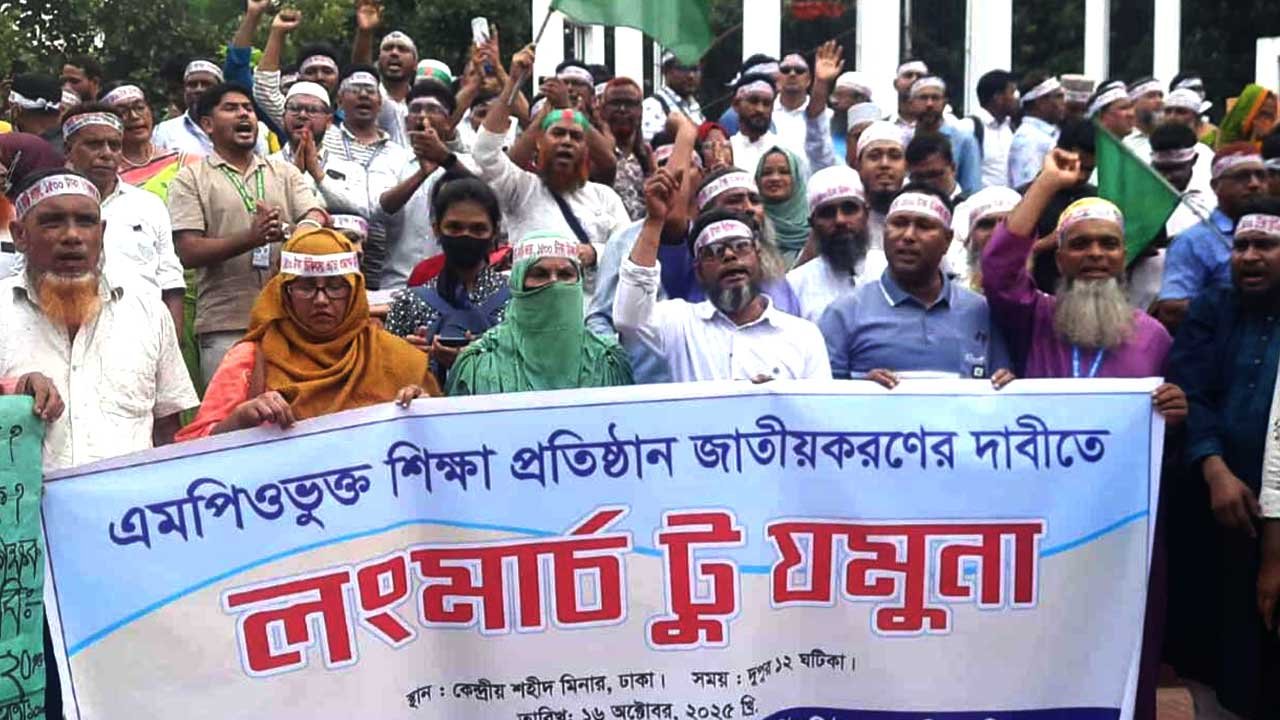 তিন দফা দাবি আদায়ের লক্ষ্যে বেসরকারি শিক্ষাপ্রতিষ্ঠানের এমপিওভুক্ত শিক্ষক-কর্মচারীরা টানা পঞ্চম দিনের মতো আন্দোলন চালিয়ে যাচ্ছেন। দাবি আদায় না হলে ‘মার্চ টু যমুনা’ কর্মসূচি পালন করবে বলে জানিয়েছেন তারা। এরই অংশ হিসেবে লং মার্চের প্রস্তুতি নিচ্ছেন শিক্ষকরা।