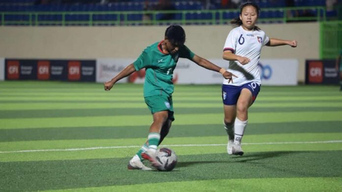 পিছিয়ে পড়ার পরও বাংলাদেশ আক্রমণে ওঠার চেষ্টা করে, বিশেষ করে বাঁ প্রান্ত দিয়ে মামনি চাকমা একাধিকবার আক্রমণ গড়ে তোলেন। তবে তার ক্রস বা পাসগুলো বেশিরভাগ সময় ফরোয়ার্ড সুরভী আকন্দ প্রীতিকে খুঁজে পায়নি। প্রথমার্ধেই বাংলাদেশের দুর্ভাগ্য। ৩৪ মিনিটে ব্যবধান দ্বিগুণ করে চাইনিজ তাইপে। এর দুই মিনিট পর মামনি চাকমার ক্রসে প্রীতি জালে বল ঠেললেও অফসাইডের কারণে গোলটি বাতিল হয়।
