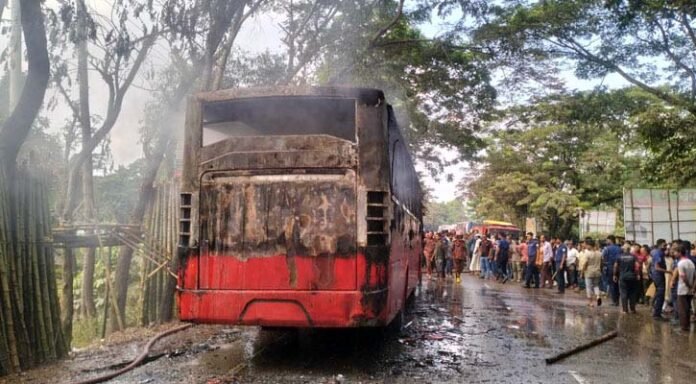 ঢাকা–বরিশাল মহাসড়কের উজিরপুর উপজেলার ইচলাদী টোল প্লাজায় চলন্ত একটি বিআরটিসি বাসে অগ্নিকাণ্ডের ঘটনা ঘটেছে। মঙ্গলবার (২৮ অক্টোবর) সকাল সাড়ে ১১টার দিকে এ দুর্ঘটনা ঘটে। ঘটনাস্থলে ফায়ার সার্ভিসের দুটি ইউনিট প্রায় ৪৫ মিনিট প্রচেষ্টা চালিয়ে আগুন নিয়ন্ত্রণে আনে।