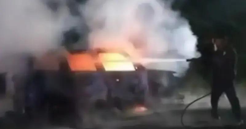 সিসিটিভি ফুটেজে দেখা গিয়েছে, অ্যাম্বুলেন্সটির একটি পেট্রোল পাম্পের কাছে ধীর গতিতে চলাকালীন চালক বুঝতে পারেন গাড়ির পিছনে আগুন লেগেছে। “চালক এবং সামনের সিটে থাকা দুই আত্মীয় আহত অবস্থায় পালাতে সক্ষম হলেও, শিশুটি, তার বাবা, চিকিৎসক এবং নার্স আগুনে পুড়ে মারা যান।” দমকল বাহিনী দ্রুত ঘটনাস্থলে পৌঁছেছিলো, কিন্তু চারজনকে উদ্ধার করা সম্ভব হয়নি।