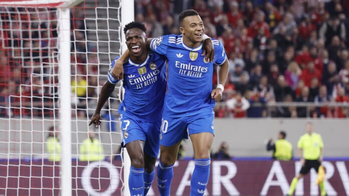 কারাইসকাকিস স্টেডিয়ামে জমজমাট লড়াইয়ে ম্যাচের শুরু থেকেই আক্রমণে ঝাঁপিয়ে পড়ে রিয়াল। কিন্তু প্রথম লিড নেয় ঘরের দল অলিম্পিয়াকোস। ৮ মিনিটে পর্তুগিজ মিডফিল্ডারের নিচু শটে এগিয়ে যায় তারা। ২২ মিনিটে ভিনিসিয়ুসের থ্রু পাস থেকে নিচু শটে সমতা আনেন এমবাপে। এরপর ২৪ মিনিটে আর্দা গুলারের ক্রসে দুর্দান্ত হেডে দ্বিতীয় গোল এবং ২৯ মিনিটে কামাভিঙ্গার পাস থেকে কোনাকুনি শটে পূর্ণ করেন হ্যাটট্রিক।
