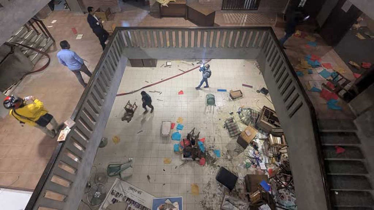 ধানমন্ডি থানার ভারপ্রাপ্ত কর্মকর্তা (ওসি) মো. সাইফুল ইসলাম গণমাধ্যমকে জানান, রাতের কোনো এক সময় একদল হামলাকারী ভবনটিতে অতর্কিতে প্রবেশ করে তাণ্ডব চালায়। হামলাকারীরা ভবনের ভেতরে ঢুকে বিভিন্ন আসবাবপত্র, দরজা-জানালা এবং অন্যান্য গুরুত্বপূর্ণ স্থাপনা ভাঙচুর করে। একপর্যায়ে তারা ভবনের চতুর্থ ও পঞ্চম তলায় আগুন ধরিয়ে দেয়।