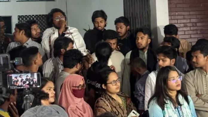 এ সময় তারা **’ফ্যাসিবাদের আস্তানা, ঢাবিতে থাকবে না’, ‘মুজিববাদ মুজিববাদ, মুর্দাবাদ মুর্দাবাদ’, ‘ইনকিলাব ইনকিলাব, জিন্দাবাদ জিন্দাবাদ’**সহ বিভিন্ন স্লোগান দেন।