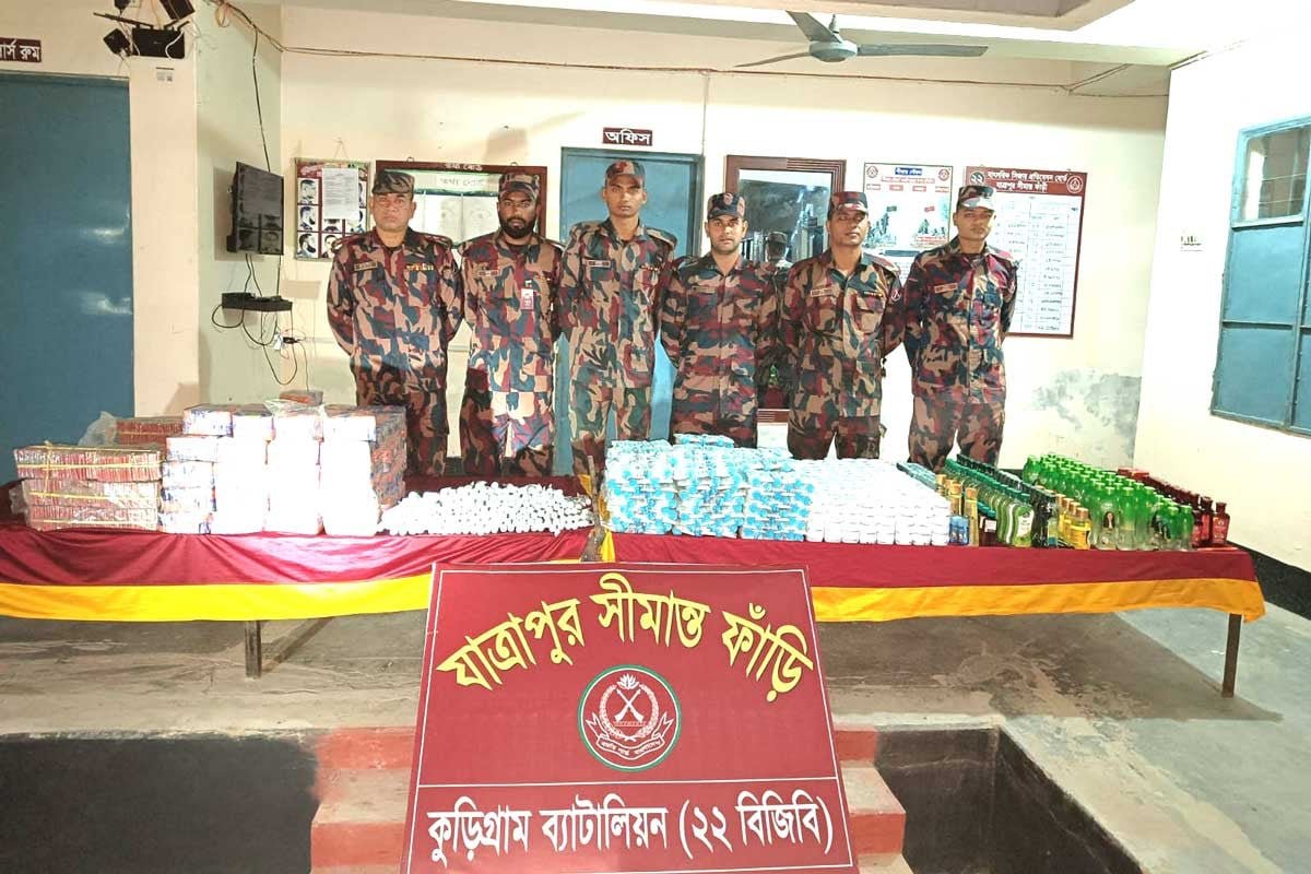 সোমবার (২২ ডিসেম্বর) দুপুরে কুড়িগ্রাম ব্যাটালিয়ন (২২ বিজিবি)-এর অধিনায়ক লেফটেন্যান্ট কর্নেল মোহাম্মদ মাহবুব-উল-হক পিএসসি অভিযানের বিস্তারিত তথ্য নিশ্চিত করেন। বিজিবি সূত্রে জানা যায়, নিয়মিত টহলের অংশ হিসেবে পরিচালিত এই অভিযানে ইয়াবা, মদ, গাঁজা, গবাদিপশু, ভারতীয় রুপি এবং বিভিন্ন ধরনের ভারতীয় পণ্য উদ্ধার করা হয়।