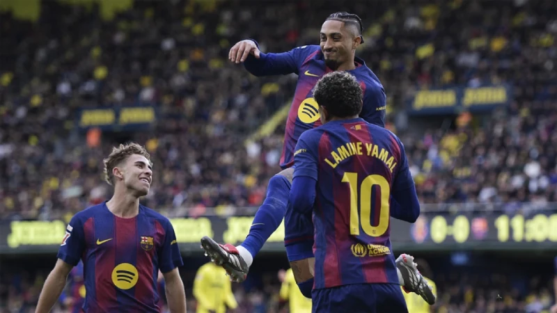লা লিগার ম্যাচে ভিয়ারিয়ালের বিপক্ষে ২-০ গোলের জয় তুলে নিয়ে পয়েন্ট টেবিলের শীর্ষস্থান নিশ্চিত করেছে বার্সেলোনা। রবিবার অনুষ্ঠিত এই ম্যাচে রাফিনিয়া ও লামিনে ইয়ামাল গোল করেন। প্রথমার্ধের ঠিক আগে স্বাগতিক ভিয়ারিয়াল ১০ জনে পরিণত হওয়ার পর ম্যাচটি পুরোপুরি অতিথিদের নিয়ন্ত্রণে চলে আসে।
