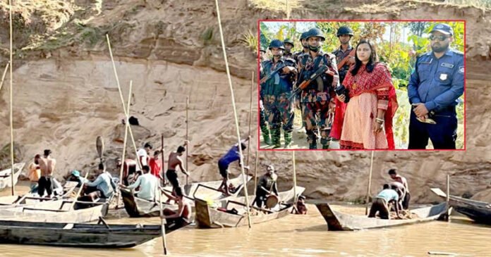সিলেটের জৈন্তাপুর উপজেলায় সরকারি নিষেধাজ্ঞা অমান্য করে নদী থেকে অবৈধভাবে বালু উত্তোলনের বিরুদ্ধে টাস্কফোর্সের সমন্বিত অভিযান পরিচালিত হয়েছে। শিক্ষা প্রতিষ্ঠান, ফসলি জমি ও নদীতীরবর্তী এলাকার সুরক্ষা নিশ্চিত করতেই এই অভিযান গ্রহণ করা হয়। মঙ্গলবার (২৩ ডিসেম্বর) বেলা ১১টার দিকে এই অভিযান পরিচালিত হয়।