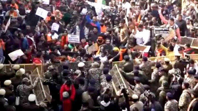 বিক্ষোভের এক পর্যায়ে উগ্র হিন্দুত্ববাদী কর্মীরা পুলিশের দেওয়া লোহার ব্যারিকেড ভেঙে হাইকমিশন অভিমুখে এগিয়ে যাওয়ার চেষ্টা করেন। পরিস্থিতি নিয়ন্ত্রণের বাইরে চলে যাওয়ায় পুলিশ লাঠিচার্জ শুরু করে বিক্ষোভকারীদের সরিয়ে দেয়। বর্তমানে ওই এলাকায় থমথমে পরিস্থিতি বিরাজ করছে এবং নিরাপত্তা ব্যবস্থা আরও জোরদার করা হয়েছে।