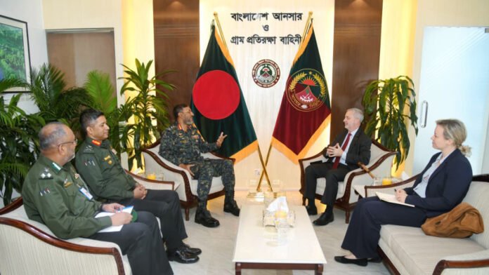 বৈঠকে বাহিনীর সদস্যদের পেশাদারিত্ব ও সক্ষমতা উন্নয়নের পাশাপাশি তাদের কল্যাণ নিশ্চিত করতে গৃহীত বিভিন্ন বহুমাত্রিক উদ্যোগ নিয়ে আলোচনা হয়। এ ক্ষেত্রে দক্ষতা বৃদ্ধিমূলক কর্মসূচি, আধুনিক প্রশিক্ষণ কাঠামো এবং প্রান্তিক সদস্যদের আর্থসামাজিক উন্নয়নে গৃহীত ‘সঞ্জীবন প্রকল্প’ বিশেষ গুরুত্ব পায়। বাহিনী প্রধান রাষ্ট্রদূতকে জানান, আনসার ও ভিডিপি সদস্যদের দক্ষ, আত্মনির্ভরশীল এবং আন্তর্জাতিক মানের মানবসম্পদ হিসেবে গড়ে তুলতে ব্যাপক প্রশিক্ষণ ও উন্নয়ন কার্যক্রম বাস্তবায়ন করা হচ্ছে। এসব উদ্যোগের ফলে প্রশিক্ষিত সদস্যদের জন্য দেশে ও বিদেশে কর্মসংস্থানের নতুন সম্ভাবনা তৈরি হচ্ছে।
