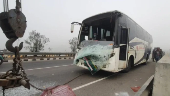 পুলিশ ও স্থানীয় সূত্রে জানা গেছে, সকালে কুচিয়ামোড়া এলাকায় কুয়াশার কারণে দৃষ্টিসীমা কমে আসায় সামনের একটি কাভার্ডভ্যানকে পেছন দিক থেকে তিনটি যাত্রীবাহী বাস পরপর ধাক্কা দেয়। খবর পেয়ে হাঁসাড়া হাইওয়ে পুলিশের সদস্যরা দ্রুত ঘটনাস্থলে পৌঁছে উদ্ধার কাজ শুরু করেন এবং আহতদের প্রাথমিক চিকিৎসার ব্যবস্থা করেন।