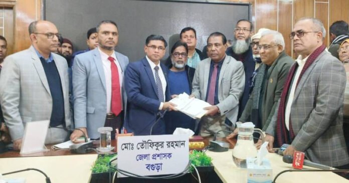 সোমবার (২৯ ডিসেম্বর) বেলা আড়াইটার দিকে বগুড়া জেলা প্রশাসক ও জেলা রিটার্নিং অফিসারের কার্যালয়ে উপস্থিত হয়ে বগুড়া সদর আসনের প্রার্থী হিসেবে তারেক রহমানের পক্ষে মনোনয়নপত্র জমা দেন জেলা বিএনপির সিনিয়র নেতারা।