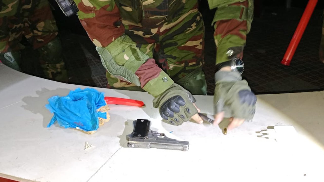 সেনাবাহিনী ও পুলিশ সূত্রে জানা যায়, গোপন সংবাদের ভিত্তিতে সেনাবাহিনীর একটি দল অভিযান চালিয়ে ওই পরিত্যক্ত টয়লেটের ভেতর থেকে একটি কাপড়ের পোটলা উদ্ধার করে। স্কচটেপ দিয়ে মোড়ানো ওই পোটলার মধ্যে ছিল ৭.৫ এমএমের একটি পিস্তল ও এক রাউন্ড গুলি। এ ছাড়া পাশে পড়ে থাকা একটি কালো ব্যাগের ভেতর থেকে চারটি ককটেল উদ্ধার করা হয়।