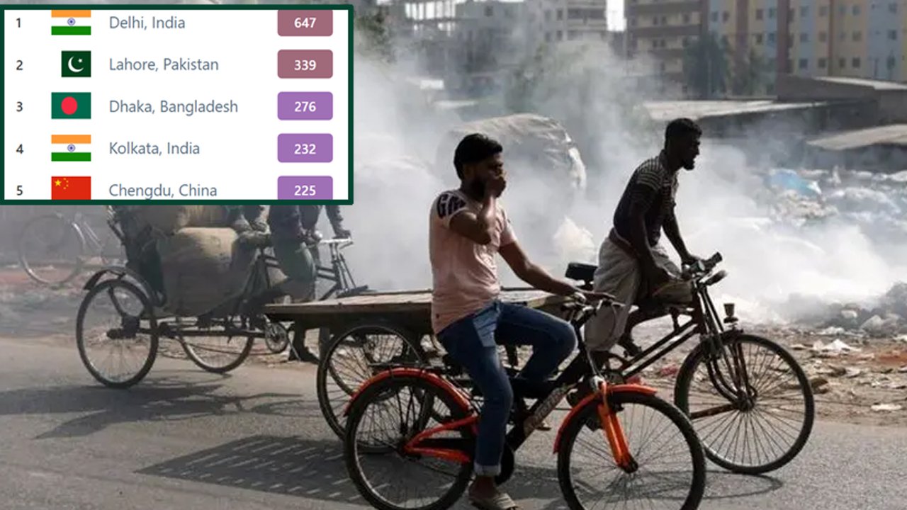আইকিউএয়ারের দেওয়া তথ্যে দেখা যায়, বিশ্বের দূষিত শহরগুলোর তালিকায় ৩৩৯ স্কোর নিয়ে দ্বিতীয় স্থানে রয়েছে পাকিস্তানের লাহোর, ২৩২ স্কোর নিয়ে চতুর্থ স্থানে রয়েছে ভারতের কলকাতা, পঞ্চম স্থানে রয়েছে চীনের চ্যাংডু, স্কোর ২২৫।