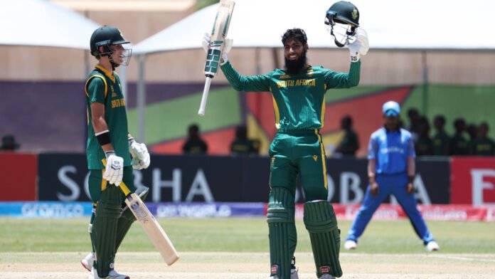 ম্যাচের শুরুতে টস জিতে ব্যাটিংয়ে নেমে শুরু থেকেই আক্রমণাত্মক মেজাজে ছিল দক্ষিণ আফ্রিকা। পাওয়ারপ্লে থেকে দ্রুত রান তোলার পর মাঝপথে জেসন রোলস ও অধিনায়ক মুহাম্মেদ বুলবুলিয়া মিলে ২০১ রানের একটি বিশাল জুটি গড়েন। রোলস মাত্র ১০১ বলে ১২৫ রান করে অপরাজিত থাকেন, যার ইনিংসে ছিল ১০টি চার ও ৫টি ছক্কা। অন্যদিকে অধিনায়ক বুলবুলিয়া ১০৮ বলে ১০৮ রান করে বড় সংগ্রহে ভূমিকা রাখেন। শেষদিকে পল জেমসের ১৮ বলে ৪৮ রানের ক্যামিওতে ৫০ ওভার শেষে দক্ষিণ আফ্রিকার সংগ্রহ দাঁড়ায় ৫ উইকেটে ৩৯৭ রান। এটি যুব ওয়ানডেতে তাদের দলীয় সর্বোচ্চ রানের নতুন রেকর্ড।