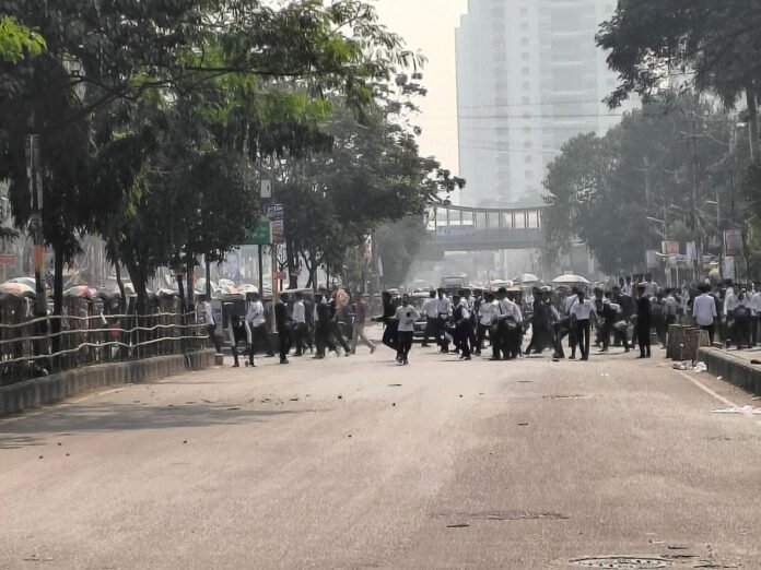 বেলা সাড়ে ১১টা থেকে শুরু হওয়া এই পাল্টাপাল্টি ধাওয়া প্রায় দেড় ঘণ্টা ধরে চলে। এ সময় ইটপাটকেল নিক্ষেপ ও ধাওয়া-পাল্টা ধাওয়ায় পুরো এলাকায় আতঙ্ক ছড়িয়ে পড়ে। পরিস্থিতি নিয়ন্ত্রণে আনতে পুলিশ কয়েক রাউন্ড টিয়ার গ্যাসের শেল ও সাউন্ড গ্রেনেড নিক্ষেপ করে। একপর্যায়ে পুলিশ ঢাকা কলেজ ক্যাম্পাসের ভেতরে টিয়ার শেল ছুড়লে শিক্ষার্থীরা ছত্রভঙ্গ হয়ে যান।