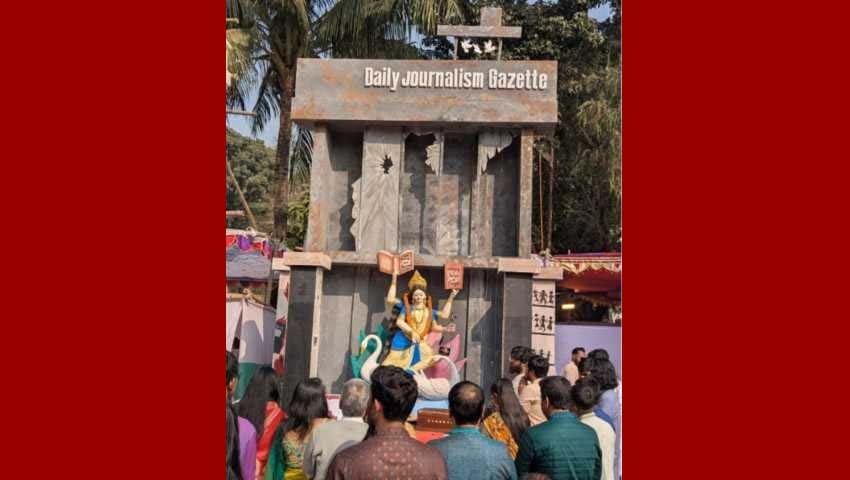 মণ্ডপটি তৈরি করা হয়েছে সম্প্রতি দেশের শীর্ষ দুই গণমাধ্যমে অগ্নিসংযোগের ঘটনার প্রতিবাদে। আয়োজকরা বলেন, সাংবাদিকতা জনগণের স্বার্থ রক্ষা ও সত্য অনুসন্ধানে নিয়োজিত। কিন্তু যখন সাংবাদিক ও গণমাধ্যম প্রতিষ্ঠানগুলো সহিংস হামলার শিকার হয়, তখন এটি শুধু একটি পেশার নিরাপত্তা নয়, বরং পুরো সমাজের গণতান্ত্রিক ভবিষ্যৎকেও ঝুঁকির মুখে ফেলে।
