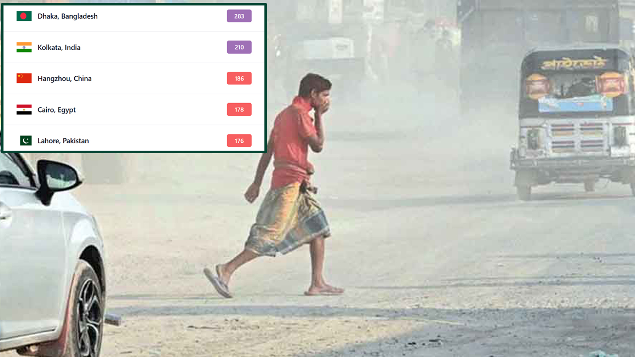 আইকিউএয়ারের তথ্যমতে, তালিকার দ্বিতীয় অবস্থানে রয়েছে ভারতের কলকাতা, যার স্কোর ২১০। তৃতীয় অবস্থানে রয়েছে চীনের হ্যাংজু (১৮৬), চতুর্থ স্থানে মিশরের কায়রো (১৭৮) এবং পঞ্চম স্থানে পাকিস্তানের লাহোর (১৭৬)।