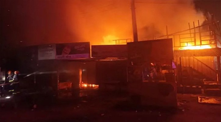 ফায়ার সার্ভিস ও স্থানীয় সূত্র জানায়, ভোরে স্থানীয় লোকজন একটি দোকানে আগুন দেখতে পান। মুহূর্তের মধ্যে আগুন ছড়িয়ে পাশের কয়েকটি দোকানেও ধরে যায়। খবর পেয়ে ফায়ার সার্ভিস দ্রুত ঘটনাস্থলে পৌঁছে আগুন নেভানোর কাজ শুরু করে এবং প্রায় এক ঘণ্টার চেষ্টায় আগুন পুরোপুরি নিয়ন্ত্রণে আসে। তবে আগুন নিয়ন্ত্রণে আসার আগেই দোকানগুলোর মালামাল পুড়ে ব্যাপক ক্ষয়ক্ষতি হয়।