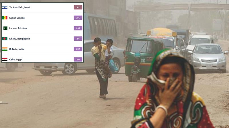 বিশ্বের দূষিত বাতাসের শহরের তালিকায় শীর্ষে তেলআবিব, চতুর্থ ঢাকা