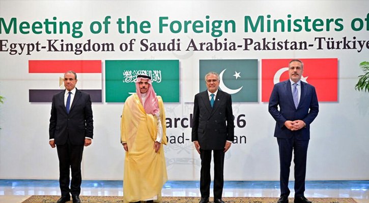 মধ্যপ্রাচ্যে চলমান যুদ্ধ বন্ধে কূটনৈতিক তৎপরতার অংশ হিসেবে পাকিস্তান, সৌদি আরব, তুরস্ক ও মিসরের মধ্যে বৈঠক অনুষ্ঠিত হয়েছে।